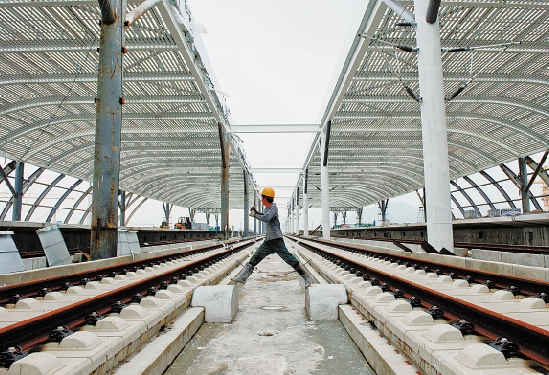 杭甬客运专线余慈站综合交通枢纽中心目前已完成主体施工,6月19日正加快进行电气化辅助工程安装。杭甬客专预计年底通车。 本报记者 李震宇 报道组 张伟 谢敏军 摄
