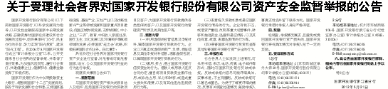 关于受理社会各界对国家开发银行股份有限公司资产安全监督举报的公告