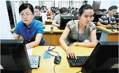 2012年杭州市中考阅卷工作于6月19日开始,今年的阅卷点设在杭州市电子信息职业学校,530名老师将对1.3万多名中考考生的试卷进行评卷打分。 尹炳炎 摄