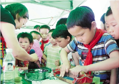 6月21日,新昌县“流动青少年宫”来到民工子弟学校,丰富多彩的活动让孩子们玩得不亦乐乎。 郭志贵 摄