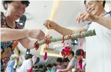 衢州市民包粽子,做香囊,画龙舟。 王飞 摄