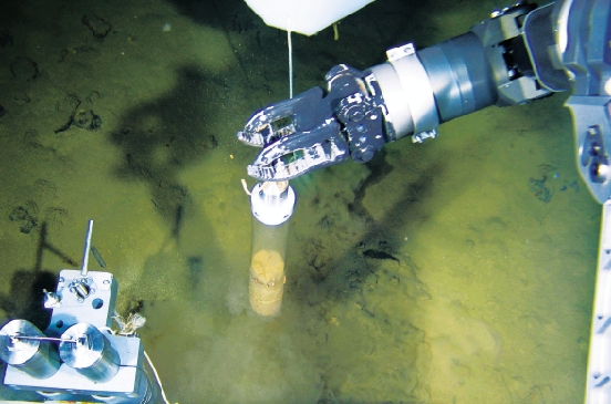 “蛟龙”号在海底采集泥土样品。 新华社发