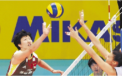 24日,在世界女排大奖赛中国漯河站最后一轮的比赛中,为奥运热身的中国队以0比3负于巴西队,获得亚军。左图为范琳琳(左)在吊球。 新华社发