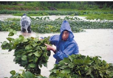 莲都区碧湖农民正在抢收青毛豆荚。 吴雅茗 摄