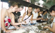 浙江农林大学留学生学做小吃,感受中国传统文化。