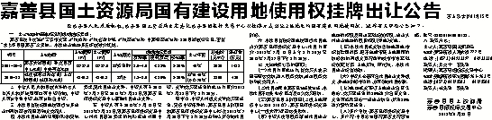 嘉善县国土资源局国有建设用地使用权挂牌出让公告
