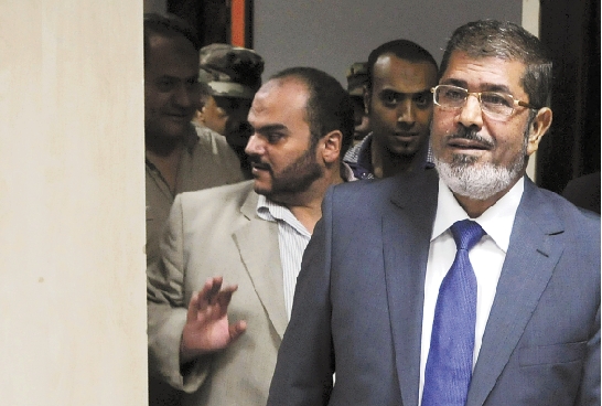 6月24日,穆尔西在开罗抵达电视台准备首次电视讲话。 新华社发