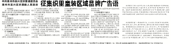 将“姓名、身份证号码、单位名称、联系方式”连同稿件,以word文档形式发送到:zlyjh313008@sina.com或zlyjh313008@qq.com。邮件主题:织里童装广告语征集。