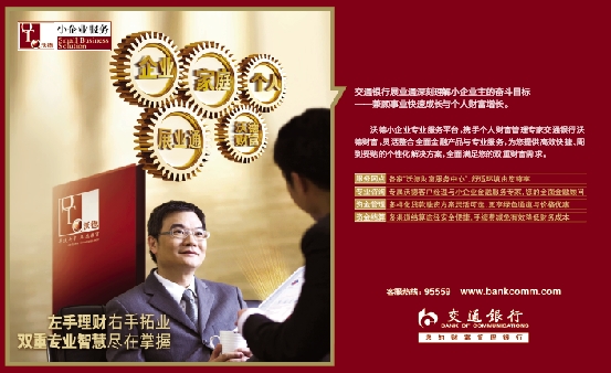 沃德小企业专业服务平台,携手个人财富管理专家交通银行沃德财富,灵活整合全面金融产品与专业服务,为您提供高效快捷、周到妥贴的个性化解决方案,全面满足您的双重财富需求。