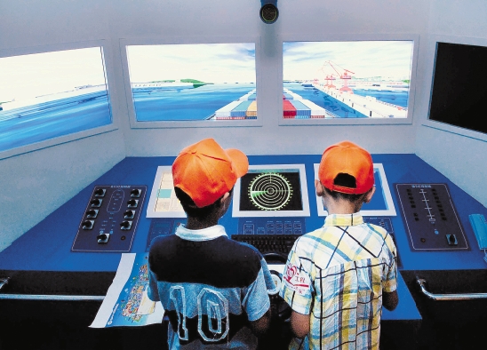 7月15日,来自宁海低收入农户家庭的孩子们在宁波江北奇E国体验航海生活。当天,宁波启动“低收入农户青少年关爱行动”,来自宁海、奉化等地的部分低收入农村青少年与爱心市民共同度过快乐一天。 杨益 胡学军 摄