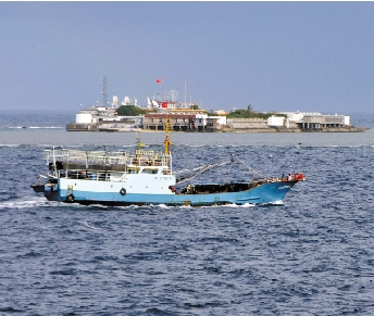 7月15日,中国渔船船队抵达永暑礁。 新华社记者 王存福 摄