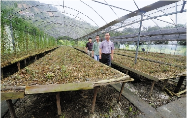 台州市路桥区横街镇凤凰山农业种养殖合作社的沈斌国自创“悬空”法种植铁皮石斛喜获成功。他在木板架空离地面五、六十公分的平板上,采用木粉、碎石种植的10余亩铁皮石斛长势喜人,亩净收入可达数万元。 王保初 摄