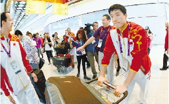 8月3日,刘翔抵达希斯罗机场,准备征战伦敦奥运会。 新华社发