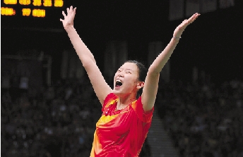 李雪芮在羽毛球女单决赛中,战胜队友王仪涵,夺得金牌。 视野网供图