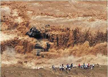 8月4日,众多游客在山西吉县黄河壶口瀑布景区观瀑。当日,受洪水影响一度紧急关闭的山西吉县黄河壶口瀑布景区恢复对外开放,景区工作人员在壶口瀑布岸边重新安装好防护栏,并设立警戒区域,确保游客安全。 目前,黄河上游形成的三号洪峰尚未对黄河中游产生影响,晋陕峡谷水势平稳。 新华社发 |
