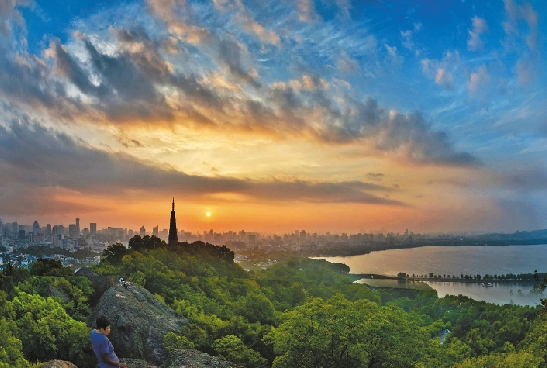 8月4日早晨,杭州宝石山上流霞满天。今年第九号台风“苏拉”带来的云系,让人们看到了美丽的“宝石流霞”。 本报记者 吴国方 摄