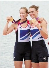 英国选手格洛弗、斯坦宁在伦敦奥运会赛艇女子双人单桨决赛中夺得冠军,成为东道主首金。