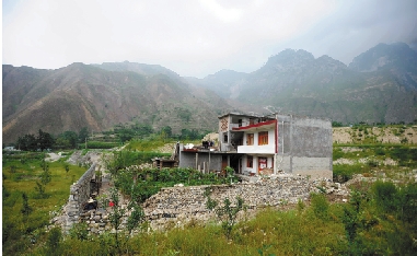 图为位于舟曲县三眼峪沟口的“最牛楼房”(8月5日摄)。在2010年8月8日的舟曲泥石流灾害中,三眼峪沟被夷为平地,但舟曲县城关镇西街村村民薛明宝家的房子奇迹般地在泥石流中屹立不倒,被称为舟曲“最牛楼房”。在重建中,经县政府和薛明宝商议,这座房子被保留下来。 新华社记者 聂建江 摄 |