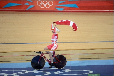 8月5日,2012年伦敦奥运会场地自行车男子全能赛结束,丹麦选手汉森夺得金牌。这也是自行车全能赛诞生的首位奥运冠军。 新华社发