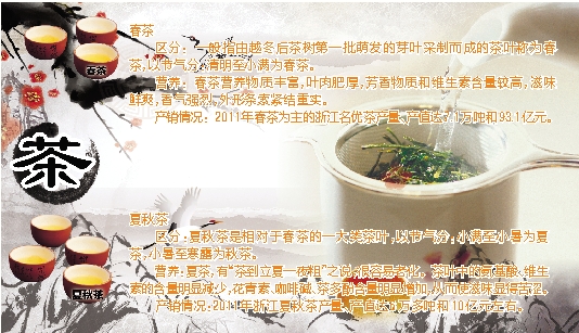 产销情况:2011年浙江夏秋茶产量、产值达6万多吨和10亿元左右。
