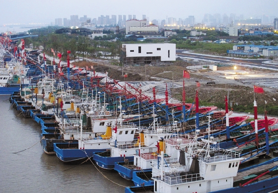 昨天早晨,百余艘舟山渔船进入甬江安全锚地避风。宁波晚报记者 龚国荣 摄