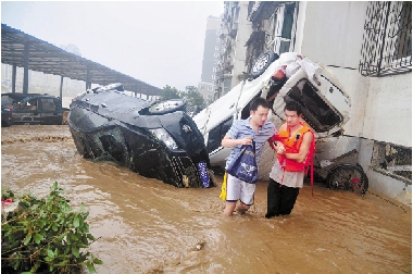| 8月6日,救援人员在十堰经济开发区转移受困群众。8月4日夜间至6日上午,湖北十堰东部地区出现特大暴雨,导致多种灾害并发。目前全市共有43万人受灾,因灾死亡13人,失踪3人,受伤725人。 新华社发(曹忠宏 摄) |
