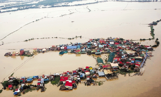 菲律宾国防部公布的这张摄于8月8日的照片,显示的是马尼拉北部布拉干的洪水灾情。 新华社发