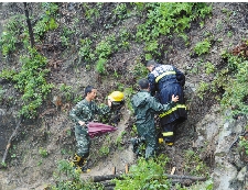 | 磐安消防大队官兵翻山进村,营救被困游客。 通讯员 邹宁浩 记者 张丹丹 摄 |