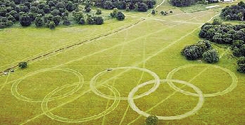 伦敦里奇蒙德公园草地上被修剪出了奥运五环标志。