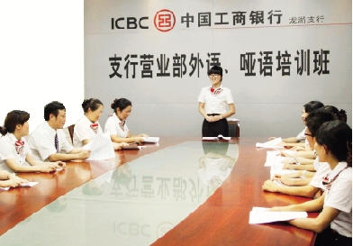 | 工行龙游支行营业部坚持文明规范服务,立足以优质服务赢得客户,被省工行确定为“优质服务样板网点”。图为该营业部员工正利用晚上时间进行哑语学习。 范瑞圭 摄 |