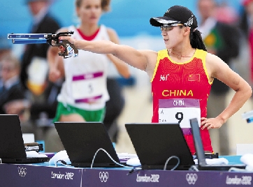 8月12日,陈倩在女子现代五项跑射比赛中。 新华社发