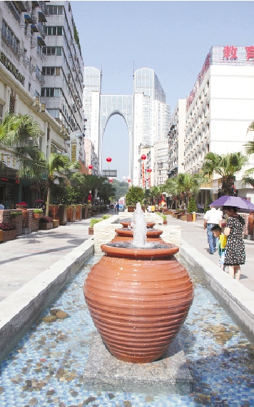 | 古韵蝉街焕新姿 绿树浓荫夏日长,楼台倒影入池塘。经过近2个月的精心施工,投资150多万元的鹿城区蝉街景观改造提升工程顺利竣工。焕然一新的新蝉街在夏日里正式开街。道路两侧的移动式花钵、复古中式屏风、陶罐花盆、景观墙、荷花池及街心花园、唯美的夜间亮灯,营造出城市园林式街景的独特风韵。 王荣 摄 |