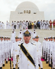 8月14日,在巴基斯坦卡拉奇,巴基斯坦海军学院官兵在国父真纳墓前参加独立日纪念仪式。当日,巴基斯坦举行独立65周年庆祝活动。巴基斯坦1858年沦为英国殖民地,1947年8月14日宣告独立。 新华社发