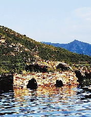 8月13日,河北宽城满族自治县潘家口水库的“水下长城”景区。 建于500多年前的喜峰口、潘家口城堡是中国明代长城的两个重要关隘。这一带的长城长约50公里,共有墩台21座。1975年,这里修建了潘家口水库,蓄水后水位超过了长城高度,喜峰口、潘家口城堡淹没于水中,从此这段明代长城便隐身水下,形成“水下长城”奇观。 今年以来,由于干旱少雨,水库水位下降10余米,致使部分“水下长城”浮出水面。7月份以来连续强降水,水库达到十年来最高水位,“水下长城”再次归隐水下。 新华社发(朱建军 摄) |
