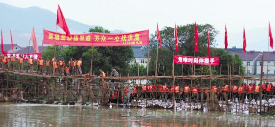 8月11日傍晚,驻浙解放军、武警官兵等经连续奋战27小时,成功堵住了西苕溪长兴县吴山村 堤缺口。 郭广杰 摄