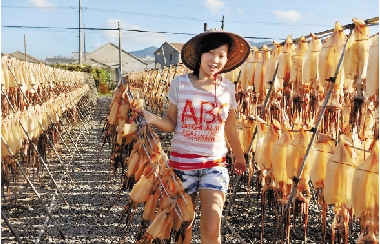 连日来,舟山70多家鱿鱼加工户忙着晾晒鱿鱼。今年舟山成品鱿鱼干供不应求,销量比去年同期翻了一番。 舟山日报记者 胡社友 摄