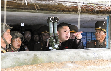 这张朝中社8月18日提供的照片显示,朝鲜最高领导人、朝鲜人民军最高司令官金正恩视察朝鲜西南前线最南端的岛屿防御队。金正恩表示,人民军对敌人的开火要予以歼灭性反击。韩美联合司令部7月23日发表新闻公报宣布,韩美将于8月20日至31日举行“乙支自由卫士”2012年度联合军演。 新华社发 |