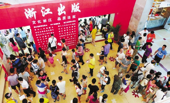 8月18日,上海书展开幕,浙江出版展区人头攒动。来自全国各地的读者在书海中寻找自己中意的书籍。 本报记者 吴煌 摄