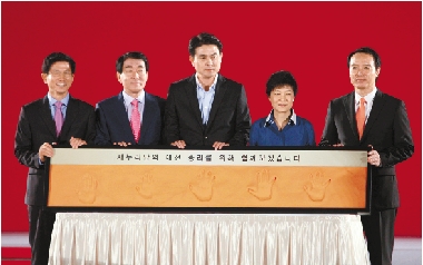8月20日,朴槿惠(右二)在高阳举行的韩国新国家党全党大会上亮相。