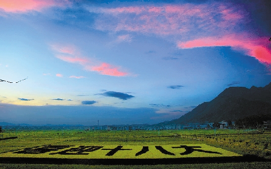 在江山峡口镇黄衢南高速出口处,“喜迎十八大”的彩色水稻田在朵朵祥云的映衬下,美轮美奂。据介绍,紫色、黄绿色和草绿色三种颜色的水稻,是江山农业局从中国水稻研究所引进种植的,与普通水稻一样可食用。稻田创意展示了江山农技人员高超的农艺水平,也表达了江山各界喜迎党的十八大的心情。 衢州日报记者 王建国 徐元昌 摄 |