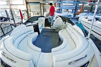 8月22日,浙江春风游艇有限公司员工正在给即将交付的高速游艇做最后检验。该公司原是乐清市一家生产摩托车企业,去年生产高速游艇后,今年订单达300多艘。