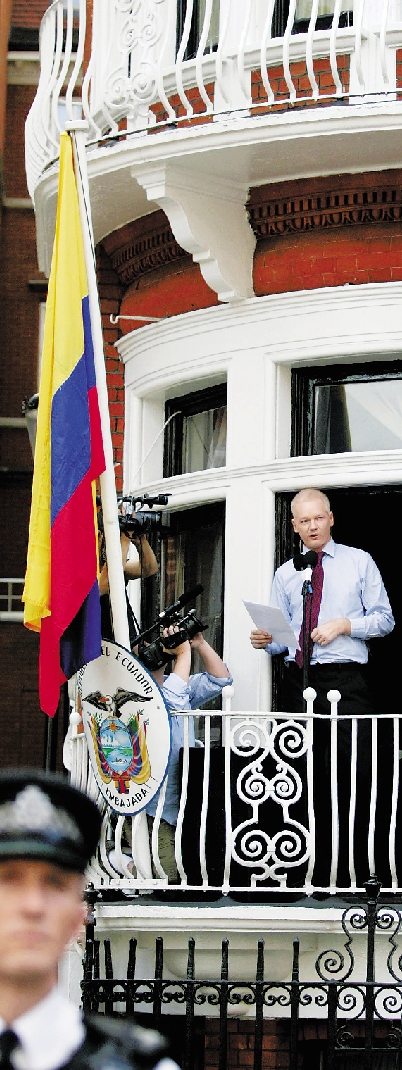 8月19日,“维基揭秘”网站创始人朱利安·阿桑奇亮相厄瓜多尔驻英国大使馆阳台,发表他进入使馆后的首次公开讲话。阿桑奇批评美国总统贝拉克·奥巴马对“维基揭秘”网站发起“政治迫害”,同时呼吁释放美国指认向“维基揭秘”泄密的美军士兵布拉德利·曼宁。