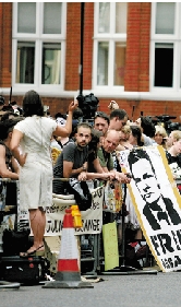 | 8月19日,大批阿桑奇的支持者聚集在厄瓜多尔驻英国大使馆前。 新华社发 |