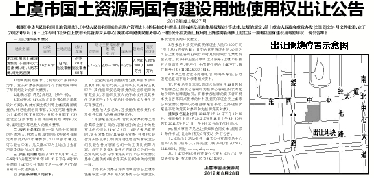 上虞市国土资源局国有建设用地使用权出让公告