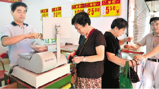 8月27日,舟山市民在定海区南珍菜场平价水产品直供点选购鱿鱼。时下正值东海伏季休渔期,舟山惠众农产品配送中心联合远洋渔业部门,从水产公司引进水产品直销市场。