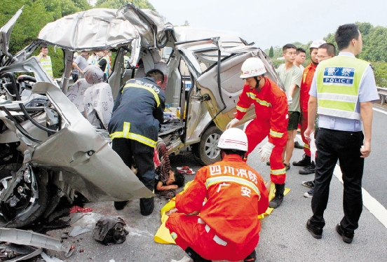 这是沪蓉高速四川广安境内汽车追尾事故现场(8月26日摄)。 新华社发