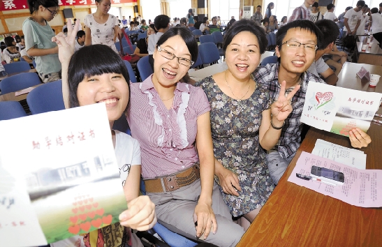 在温州,收到善款的寒门学子喜笑颜开。 孙凛 摄