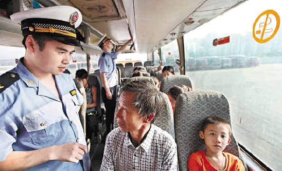 8月28日,台州市公路运管稽查支队执法人员在一辆客车上检查安全隐患。连日来,台州运管、交警部门加大对客车检查力度,确保开学期间旅客乘车安全。 孙金标 摄