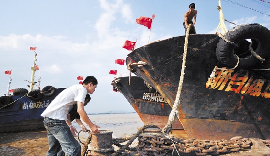 昨日,台州市部分渔船继续滞港,以避开台风的袭击。 郏策 摄