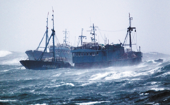 这是8月27日在济州岛西归浦海域拍摄的触礁中国渔船。 新华社发